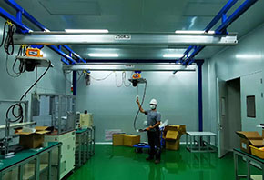 ●客户工厂为新建成,以前客户其他工厂使用过其它品牌的 KBK 和少量孚尔特产品,在使用过程中客户发现,孚尔特起重机更能满足生产节拍,提高生产效率,降低维修成本,提高工人操作舒适度。孚尔特安全,高效,人性化的设计理念有效提高工人满意度,提升了产品质量;