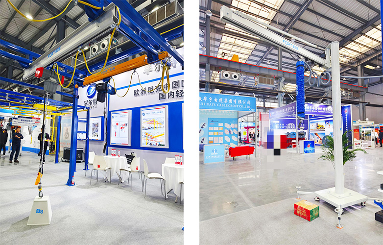 孚尔特重工此次展位位于展馆中心位置,展位面积90平米。展出设备有自立式组合式起重机、铝合金轨道起重机、智能辅助提升装置和吸管吊产品,展品丰富多元化,搭配实物吊具给客户以更真实的操作感受。此次孚尔特重工于欧洲尼克联合参展,尼克NIKO是欧洲型轨专业制造商,有五十多年的历史,在全球30多个国家都有业务分布。尼克此次带来的输送线系统也吸引了诸多观众参观体验。通过此次参展,孚尔特重工在行业内的知名度和美誉度得到了很大的提升,也收获了数个项目询盘。